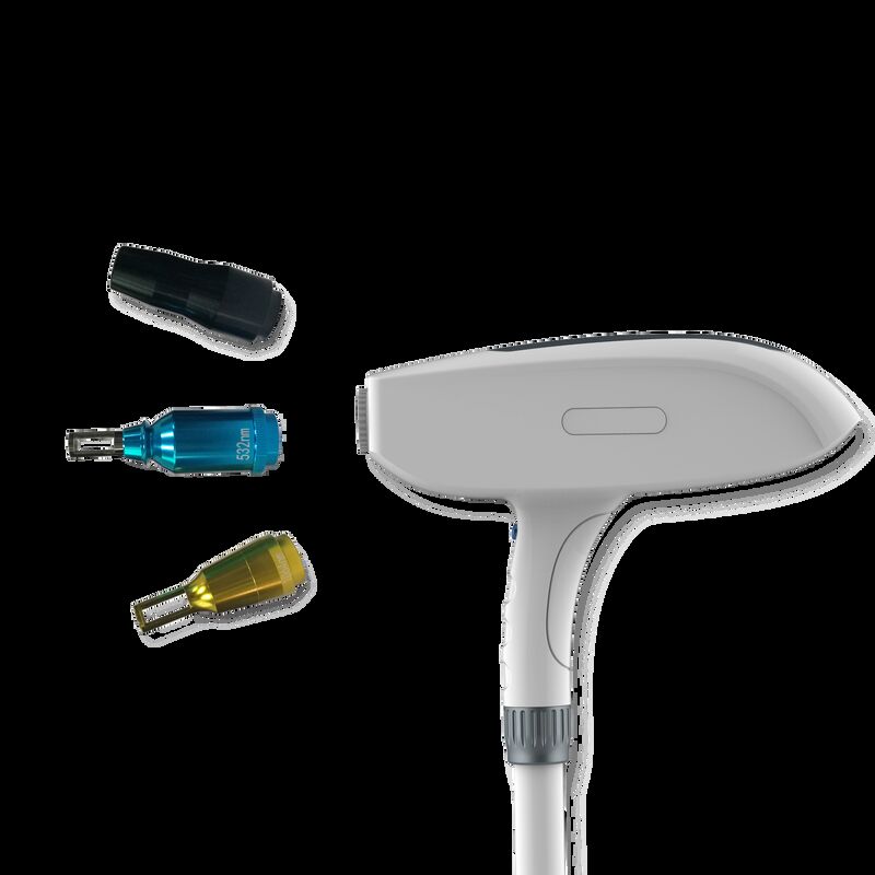 De laser heeft twee uitwisselbare behandelpunten, elk met verschillende golflengten: 1064 nm en 532 nm.